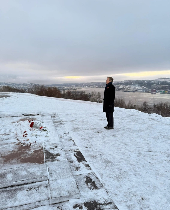 Сегодня, в День памяти павших, в Мурманск прибыл посол Великобритании Найджел Кейси. Он возложил цветы у памятника «Алёша» и у стелы на Союзническом военном кладбище.