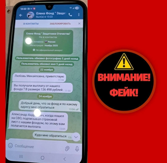 «Никогда не передавайте свои личные данные по телефону или в сообщениях. Руководитель филиала фонда и социальные координаторы НЕ запрашивают такую информацию через неофициальные каналы. Всегда перепроверяйте любую подозрительную информацию», — предупредили северян.