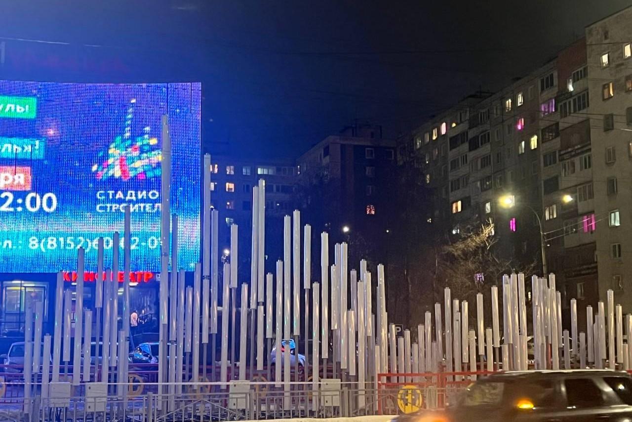 Возле кинотеатра «Мурманск» устанавливают световую инсталляцию «Северное сияние»: как она выглядитМурманск продолжают украшать в Новому году